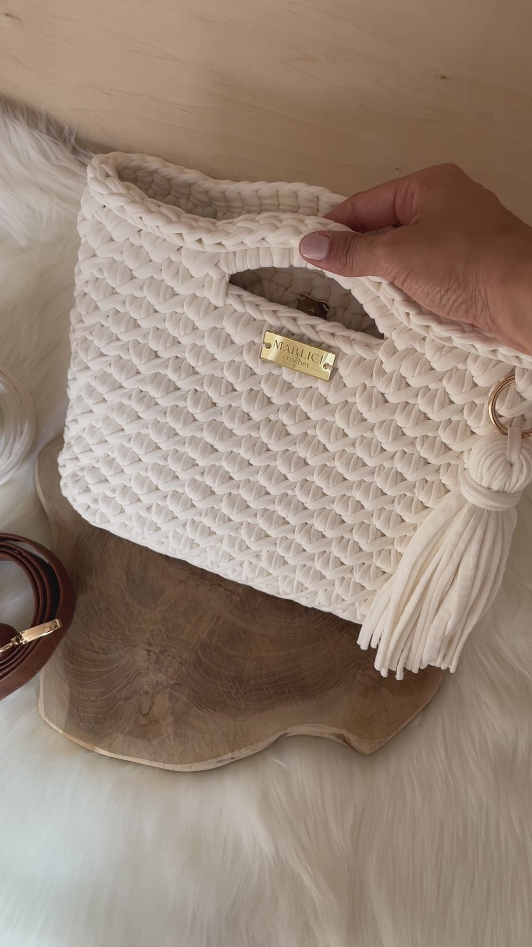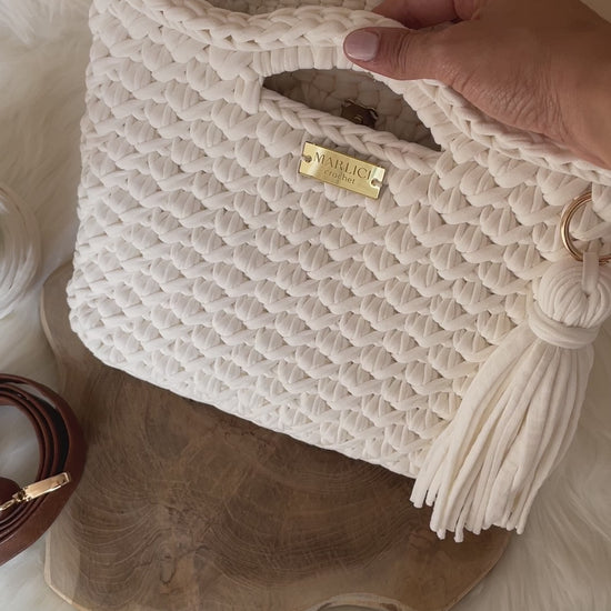 Indulge in luxury with the Clara Handbag. Crocheted with stunning stitch work, this exclusive and elegant medium-sized bag is perfect for all occasions. Elevate your style with this beautiful and stylish handmade piece, crafted to perfection for those who appreciate the finer things in life.