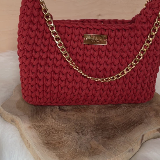 Indulge in luxury with the Maya Handbag. Handmade with premium t-shirt yarn (100% cotton), this bag boasts an elegant crochet design and can be used with a vegan leather or metal strap. Each bag is unique and stunning, made with European materials to ensure high quality.