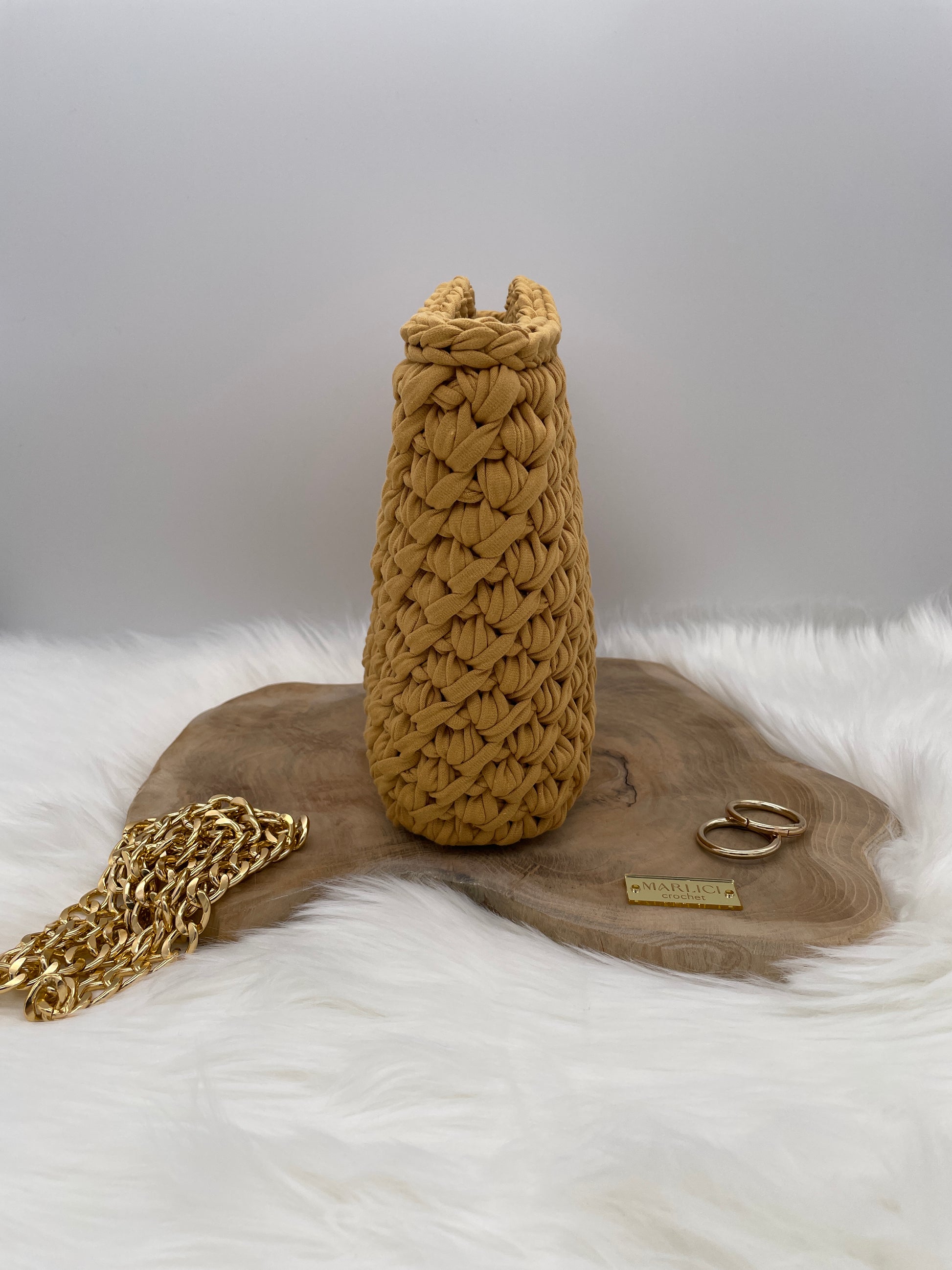 Indulge in luxury with the Clara Handbag. Crocheted with stunning stitch work, this exclusive and elegant medium-sized bag is perfect for all occasions. Elevate your style with this beautiful and stylish handmade piece, crafted to perfection for those who appreciate the finer things in life.